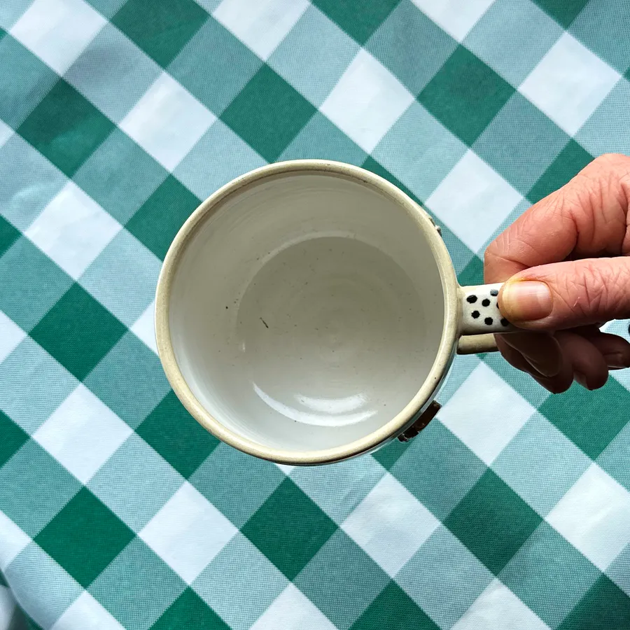 Kubki pokryte są szkliwami dopuszczonymi do kontaktu z żywnością.Środek pokryty białym szkliwem.