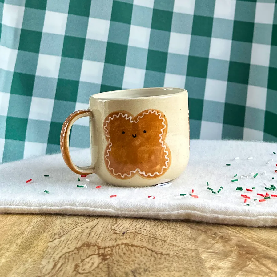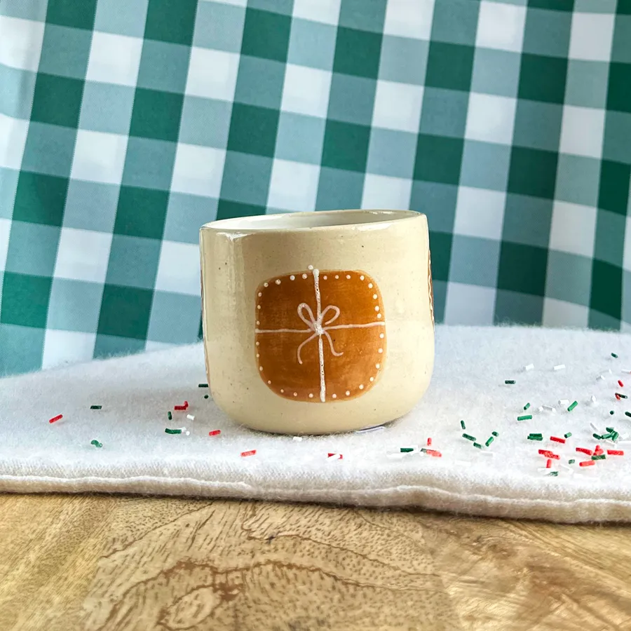Kubeczek został wytoczony na kole garncarskim z jasnobeżowej gliny, następnie ręcznie malowany. Z tych dwóch powodów kubeczki mogą się różnić od siebie nieznacznie wymiarami, układem oraz wielkością zdobień.
