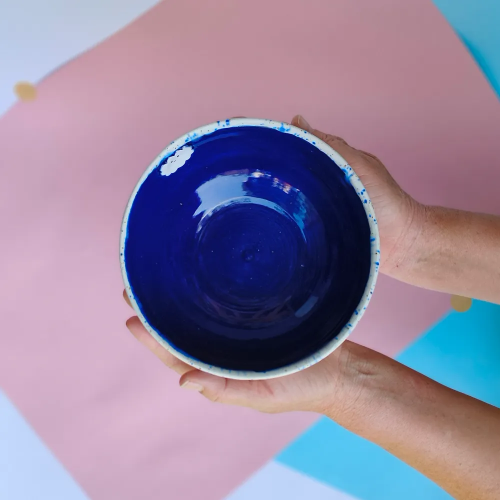 Środek pokryty kobaltowym szkliwem, strona zewnętrzna to nieposzkliwona gładka glina.
